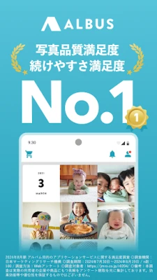 ALBUSが提供するのは、ただのプリントサービスではありません。高品質な正方形の写真を毎月8枚、追加費用なく*お届けし、さらに整理に便利なマンスリーカードも付属します。これにより、届いた写真を専用のALBUSBOOK(アルバスブック)に収めるだけで、いつの間にか一冊の物語が完成します。ALBUSBOOKは、多くのママから支持される**こだわり抜かれたデザインと機能性を誇り、台紙の素材からポケットの配置まで、細部にわたり「見返す喜び」を追求しました。また、お子様が生まれた月やそれ以前の思い出も遡ってプリント可能***なので、誕生からの成長の軌跡を一つのアルバムにまとめ上げることができます。