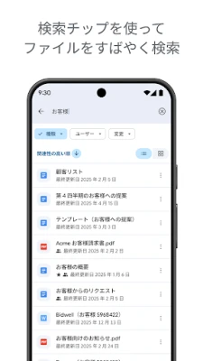 「Google ドライブ」は、あなたのデジタルライフを整理し、どこからでもアクセス可能にする、信頼性の高いクラウドストレージソリューションです。大切な文書、写真、動画といったあらゆるファイルを、場所を選ばずに安全に保管し、必要な時にいつでも手軽に呼び出すことができます。PDFやOfficeファイルを含む100種類以上の多様な形式に対応し、デバイスのカメラを使えば紙の書類も手軽にスキャンしてデジタル化。頻繁に使うファイルや重要な資料へは瞬時にアクセスでき、ファイル名や内容、最終更新日などの条件で効率的に検索・絞り込みが可能です。オフライン環境でもコンテンツを閲覧でき、重要なアクティビティはリアルタイムで通知されるため、常にファイルの状態を把握できます。Androidタブレットに最適化されたインターフェースは、並べて表示やドラッグ&ドロップなどの直感的な操作で、作業効率を格段に向上させます。