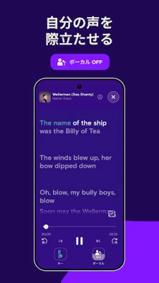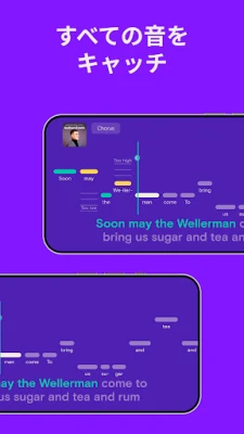 歌唱中も、リアルタイムのフィードバックがあなたの成長を力強くサポートします。音程がぴったり合った瞬間の「やった!」という達成感は格別。楽しみながら、正しい発声法やリズム感を自然と習得し、歌唱力を飛躍的に向上させることができるでしょう。歌うたびに自信がつき、あなたの歌声が持つ無限の可能性を、ぜひこのアプリで発見してください。
