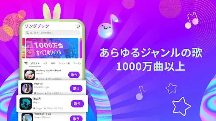 Smuleで新しい歌の世界を発見。世界中の音楽ファンが集まるカラオケアプリSmuleは、友達やアーティストと歌い、ソロ録音や動画作成・共有が可能。高度なエフェクトで声をカスタマイズし、プロのような歌唱を。