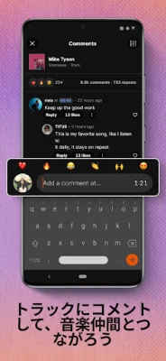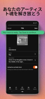 SoundCloudでは、あなたの音楽の好みに合わせて厳選されたミックスやプレイリストが、いつでも新しい発見へと誘います。他のストリーミングサービスでは聴くことのできないDJセットやリミックス、そしてアーティストが直接公開する限定トラックなど、SoundCloudならではの独占コンテンツが満載です。お気に入りの曲を見つけたら、すぐにコレクションに追加したり、オリジナルのプレイリストを作成して気分に合わせて楽しめます。さらに、お気に入りのアーティストをフォローし、他のファンと交流したり、作品に「いいね!」やコメントを残したりすることで、音楽を通じた活発なコミュニティに参加できます。自身で楽曲を制作している方は、SoundCloudに直接アップロードすることで、世界中の数百万人のリスナーにあなたの音楽を届けることも可能です。