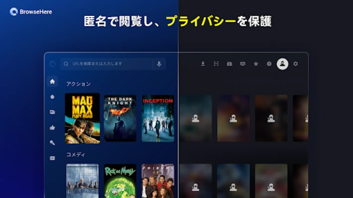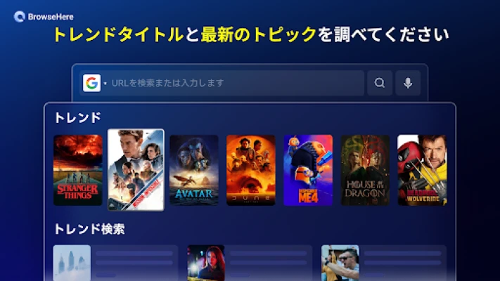 TV ブラウザ BrowseHere は、Android TV に最適な洗練されたウェブブラウザです。広告ブロック機能で快適なインターネット閲覧を可能にし、映画、TV 番組、アニメ、動画のストリーミングもスムーズに楽しめます。TV リモコンで簡単に操作でき、ブックマークや履歴管理など便利な機能も充実しています。