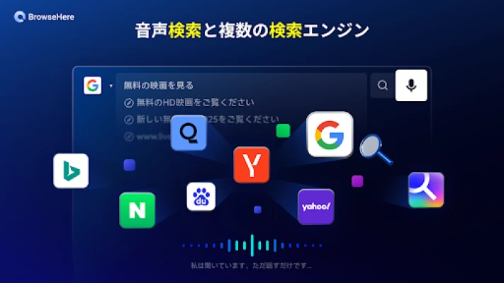 BrowseHereは、あなたのリビングルームのテレビ体験を革新する、究極の多機能ウェブブラウザです。アプリ内課金は一切なく、完全無料で全ての機能を心ゆくまでお楽しみいただけます。Web上の様々な動画コンテンツを大画面で快適に視聴でき、ブックマークや字幕機能も充実。さらに、リモコンでの文字入力の手間を省く画期的な音声入力機能を搭載。どんな言語でも話すだけで簡単に検索でき、あなたの視聴をさらにスムーズにします。